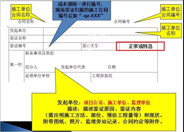 1、發(fā)起單位填寫《現(xiàn)場簽證聯(lián)系、通知及確認單》(簡稱《確認單》,第一欄,描述簽證原因、簽證內(nèi)容(需注明施工方法、部位、工程量、工日、造價等)和現(xiàn)狀。附帶圖紙、照片、監(jiān)理旁站記錄、合同約定等附件。