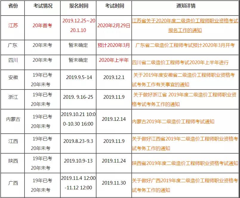 2020年一級造價師考試時間為10月24日、25日!